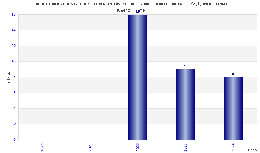 | Anno | Firme | Importi | Media | Naz. | Reg. | Prov. | Comu. |