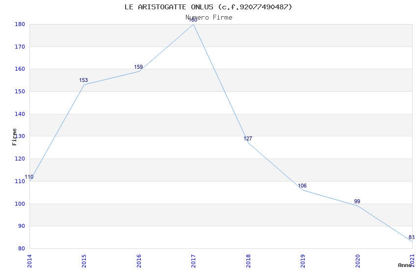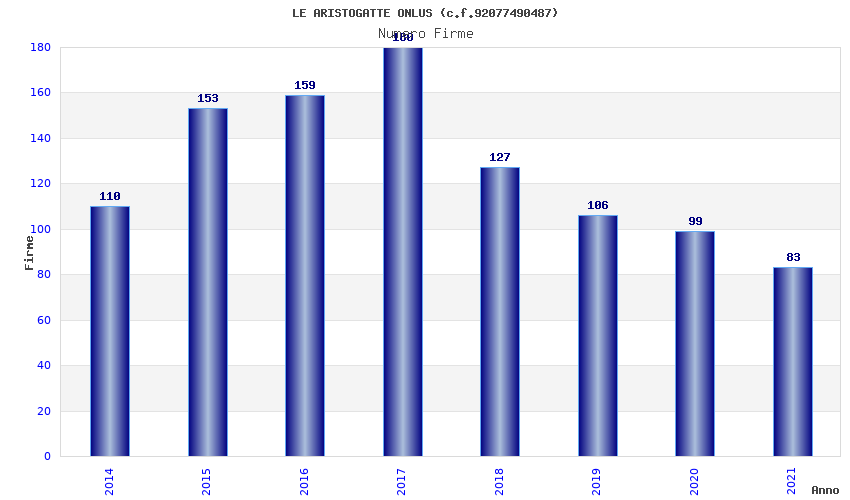 | Anno | Firme | Importi | Media | Naz. | Reg. | Prov. | Comu. |