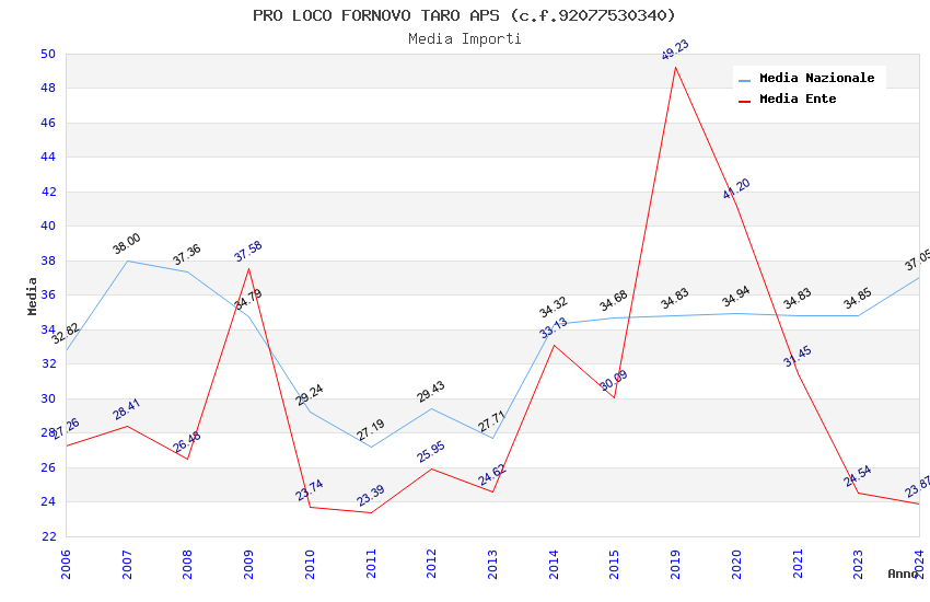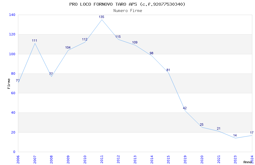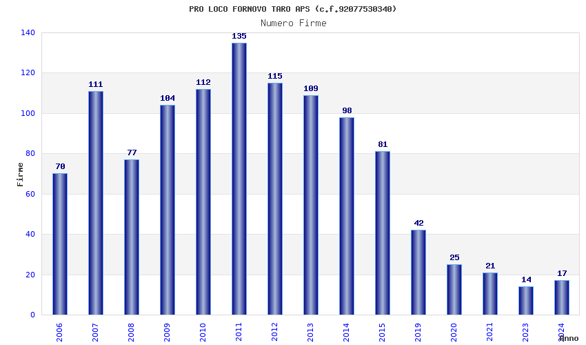 | Anno | Firme | Importi | Media | Naz. | Reg. | Prov. | Comu. |