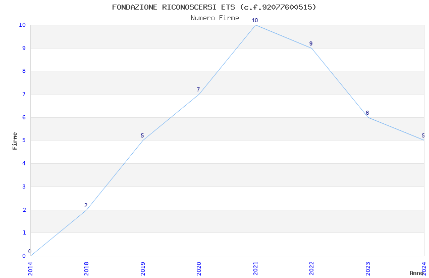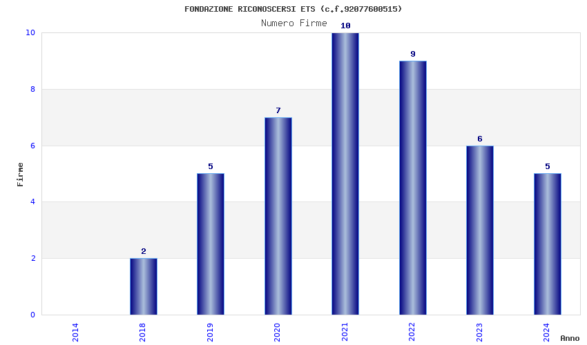 | Anno | Firme | Importi | Media | Naz. | Reg. | Prov. | Comu. |