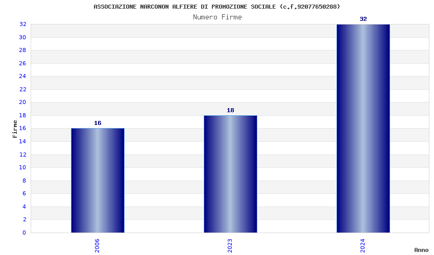 | Anno | Firme | Importi | Media | Naz. | Reg. | Prov. | Comu. |