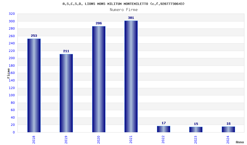 | 2021 | 301 | 10.989,83 | 36,51 | 4.501 | 265 | 17 | 1 |