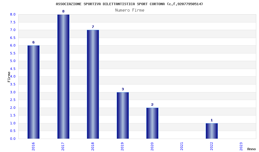 | Anno | Firme | Importi | Media | Naz. | Reg. | Prov. | Comu. |