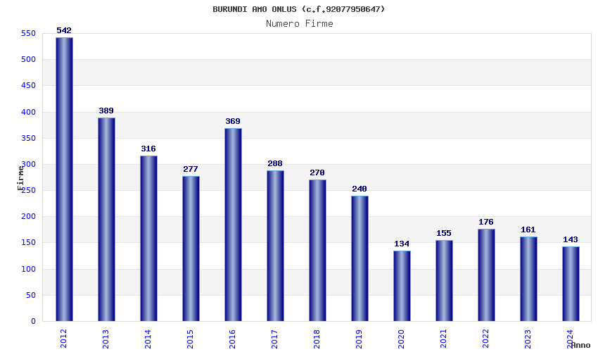 | Anno | Firme | Importi | Media | Naz. | Reg. | Prov. | Comu. |
