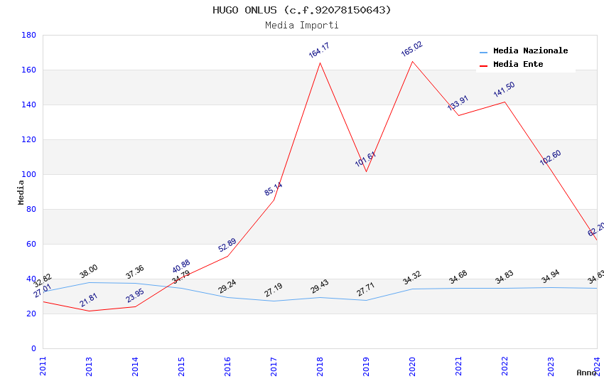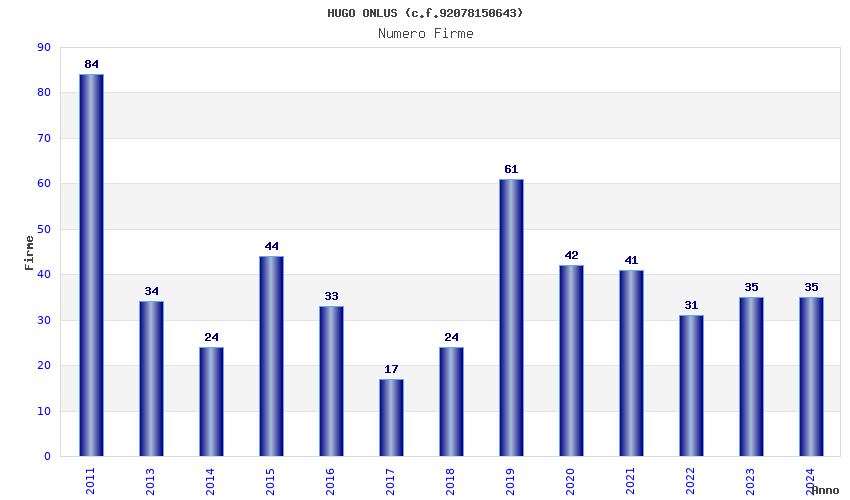 | Anno | Firme | Importi | Media | Naz. | Reg. | Prov. | Comu. |
