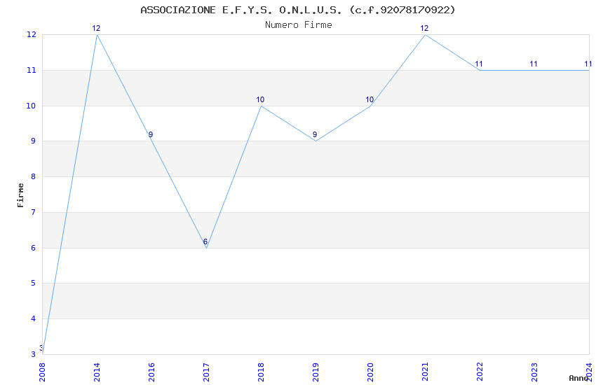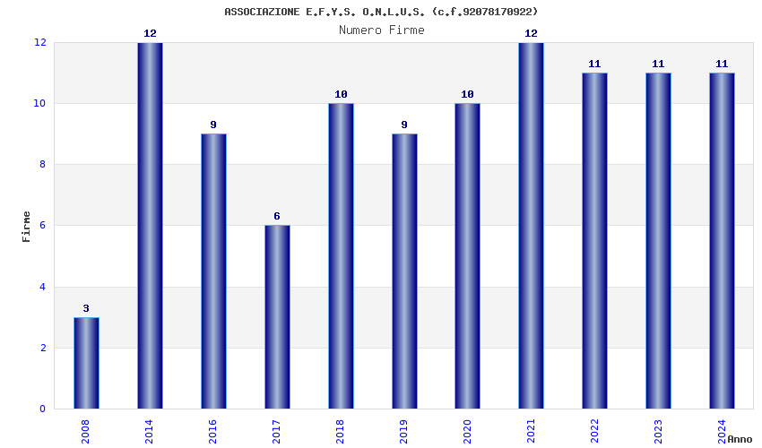 | Anno | Firme | Importi | Media | Naz. | Reg. | Prov. | Comu. |