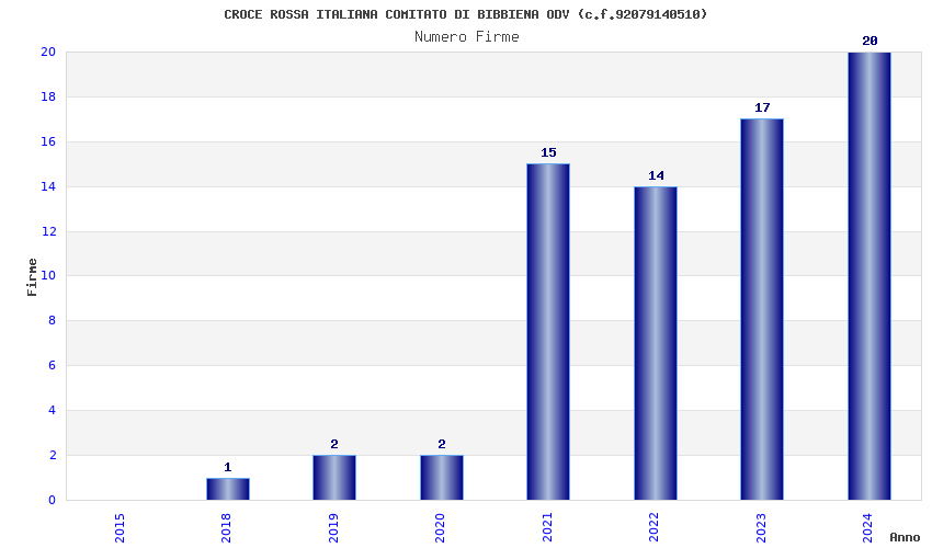 | Anno | Firme | Importi | Media | Naz. | Reg. | Prov. | Comu. |