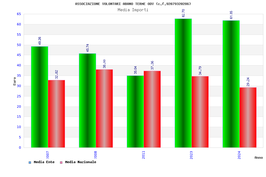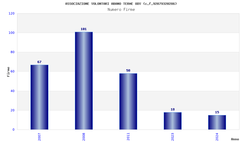 | Anno | Firme | Importi | Media | Naz. | Reg. | Prov. | Comu. |
