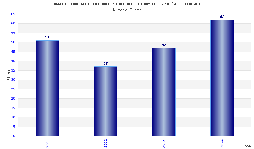 | Anno | Firme | Importi | Media | Naz. | Reg. | Prov. | Comu. |
