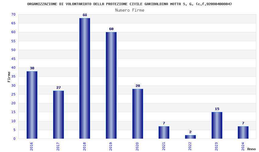 | Anno | Firme | Importi | Media | Naz. | Reg. | Prov. | Comu. |