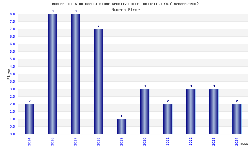 | Anno | Firme | Importi | Media | Naz. | Reg. | Prov. | Comu. |
