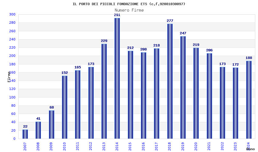 | Anno | Firme | Importi | Media | Naz. | Reg. | Prov. | Comu. |