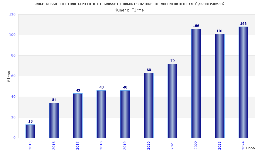 | Anno | Firme | Importi | Media | Naz. | Reg. | Prov. | Comu. |