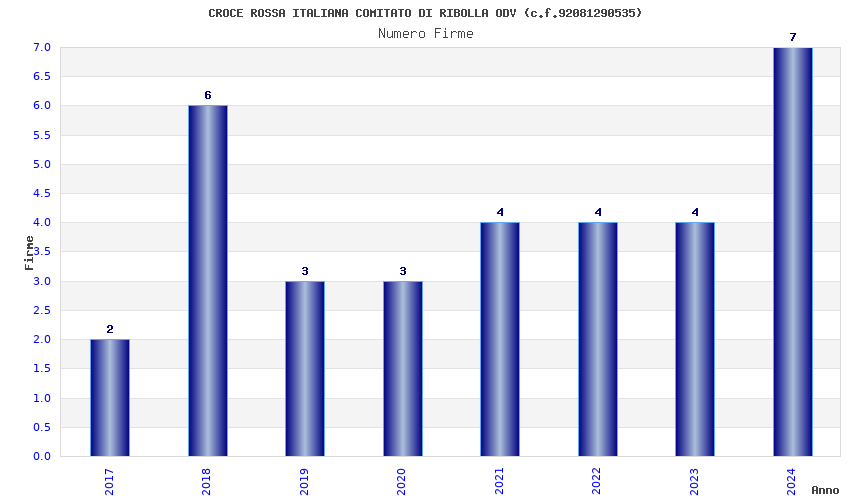 | Anno | Firme | Importi | Media | Naz. | Reg. | Prov. | Comu. |