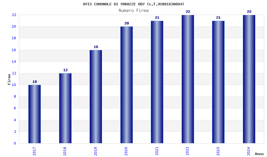 | Anno | Firme | Importi | Media | Naz. | Reg. | Prov. | Comu. |