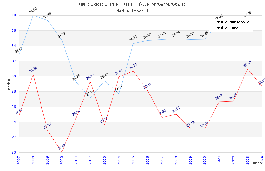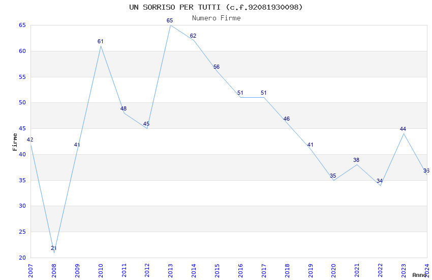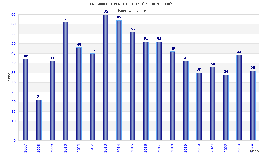 | Anno | Firme | Importi | Media | Naz. | Reg. | Prov. | Comu. |