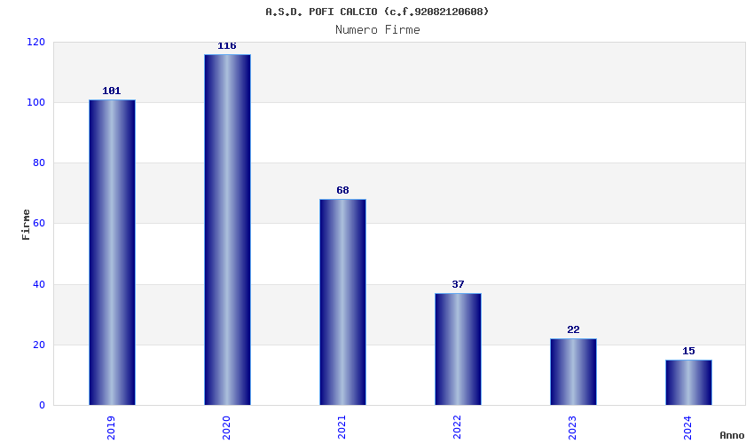 | Anno | Firme | Importi | Media | Naz. | Reg. | Prov. | Comu. |