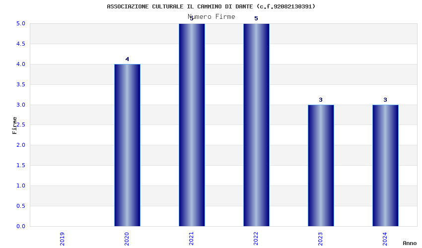 | Anno | Firme | Importi | Media | Naz. | Reg. | Prov. | Comu. |