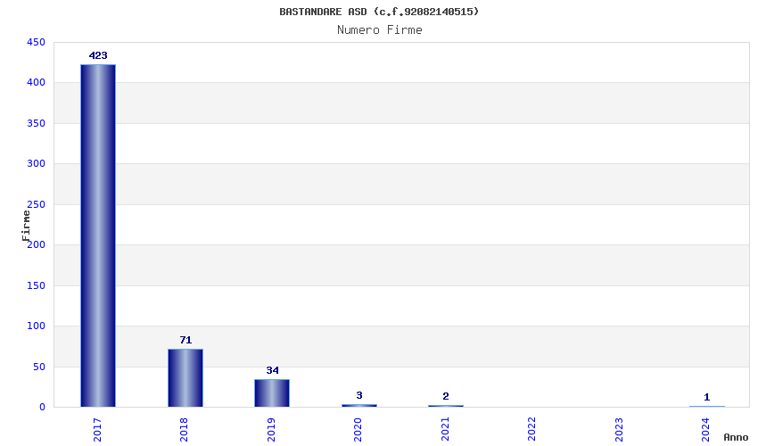 | Anno | Firme | Importi | Media | Naz. | Reg. | Prov. | Comu. |