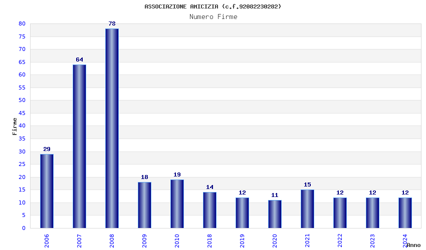 | Anno | Firme | Importi | Media | Naz. | Reg. | Prov. | Comu. |