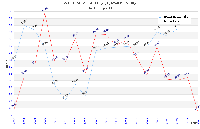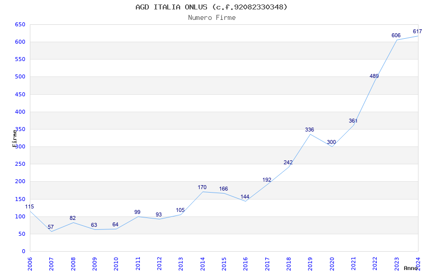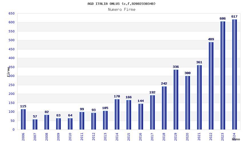 | Anno | Firme | Importi | Media | Naz. | Reg. | Prov. | Comu. |