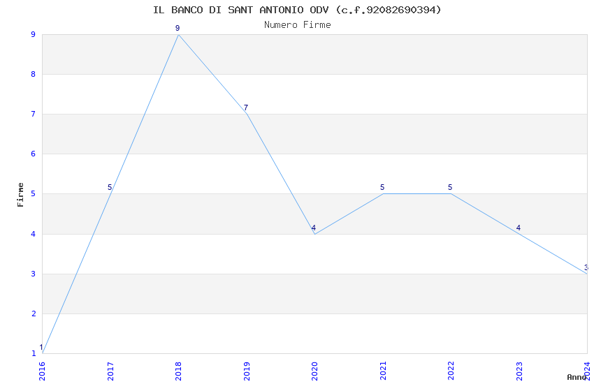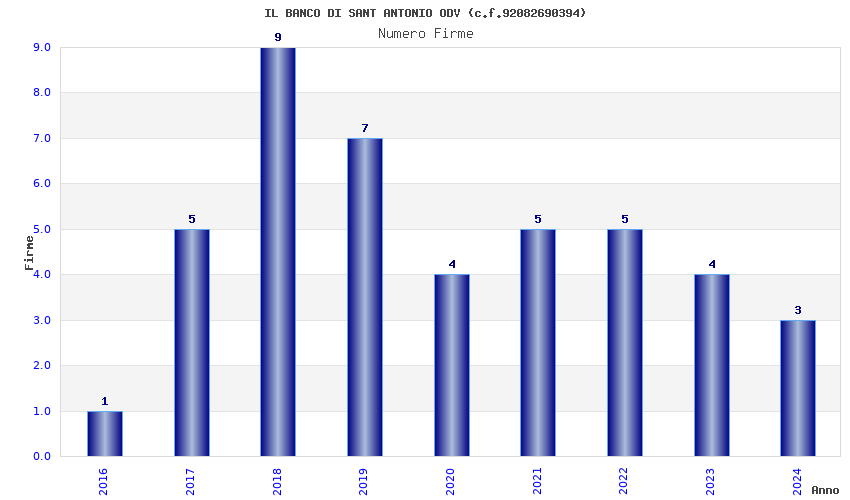 | Anno | Firme | Importi | Media | Naz. | Reg. | Prov. | Comu. |