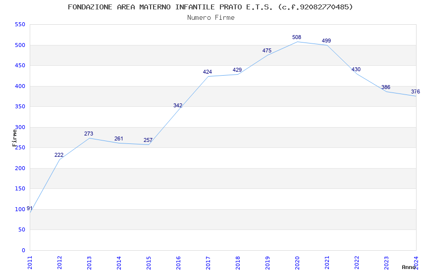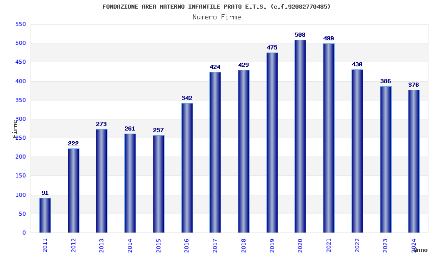 | Anno | Firme | Importi | Media | Naz. | Reg. | Prov. | Comu. |