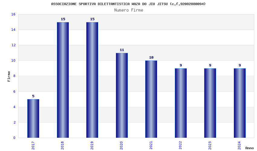 | 2019 | 15 | 341,57 | 22,77 | 50.323 | 1.392 | 268 | 9 |