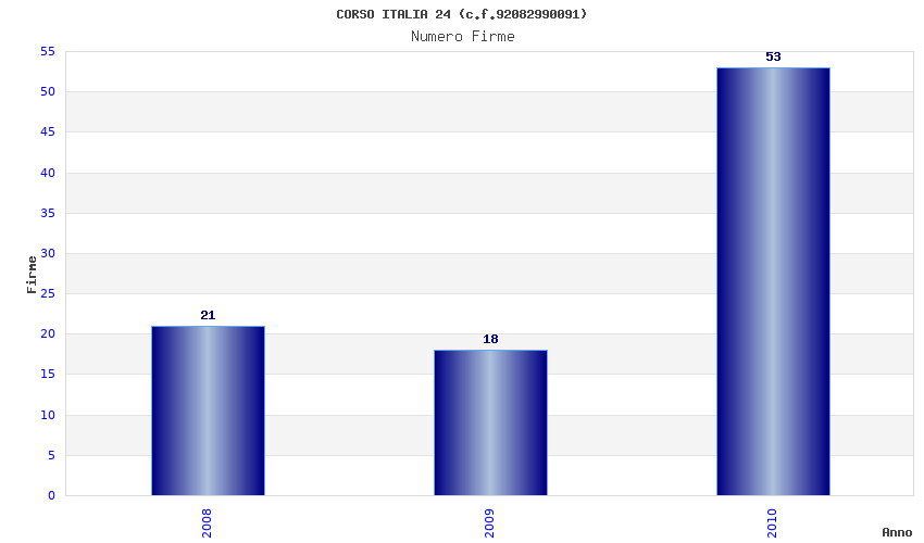 | Anno | Firme | Importi | Media | Naz. | Reg. | Prov. | Comu. |