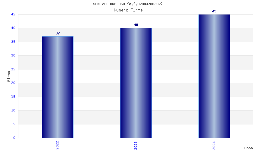 | Anno | Firme | Importi | Media | Naz. | Reg. | Prov. | Comu. |