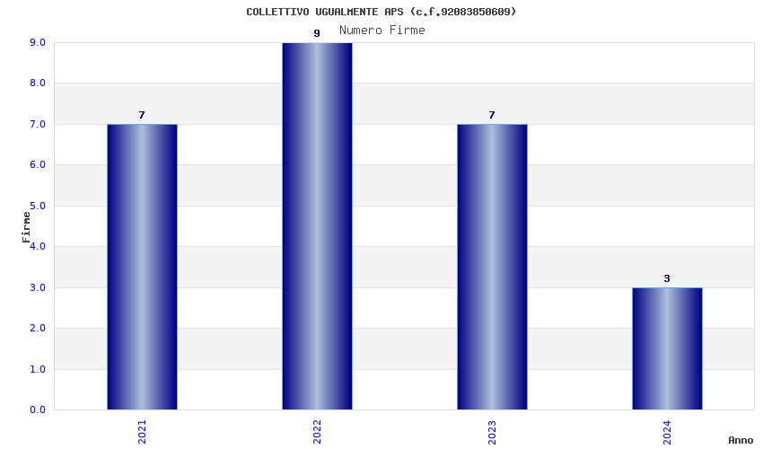 | Anno | Firme | Importi | Media | Naz. | Reg. | Prov. | Comu. |