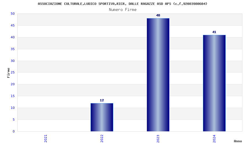 | Anno | Firme | Importi | Media | Naz. | Reg. | Prov. | Comu. |