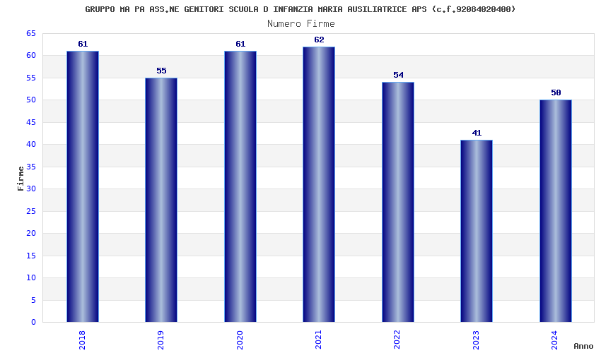 | Anno | Firme | Importi | Media | Naz. | Reg. | Prov. | Comu. |