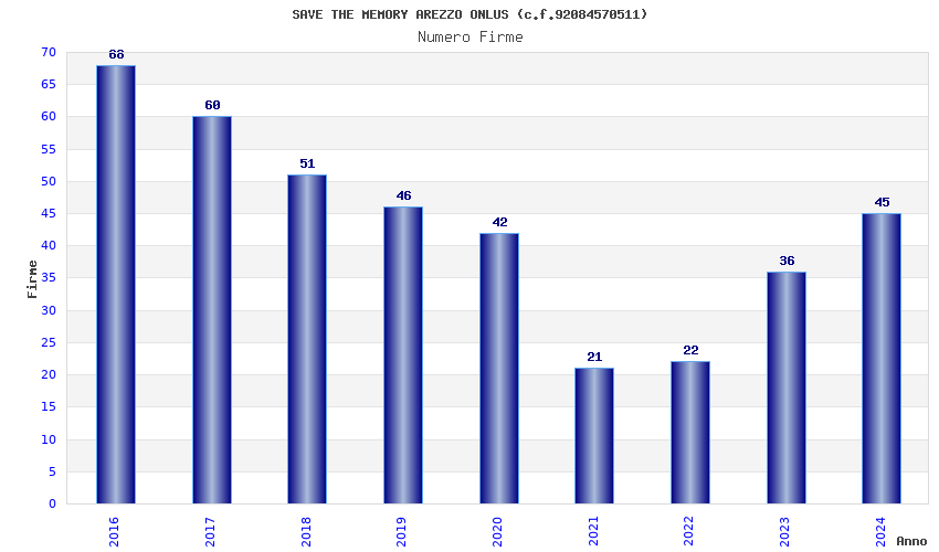 | Anno | Firme | Importi | Media | Naz. | Reg. | Prov. | Comu. |