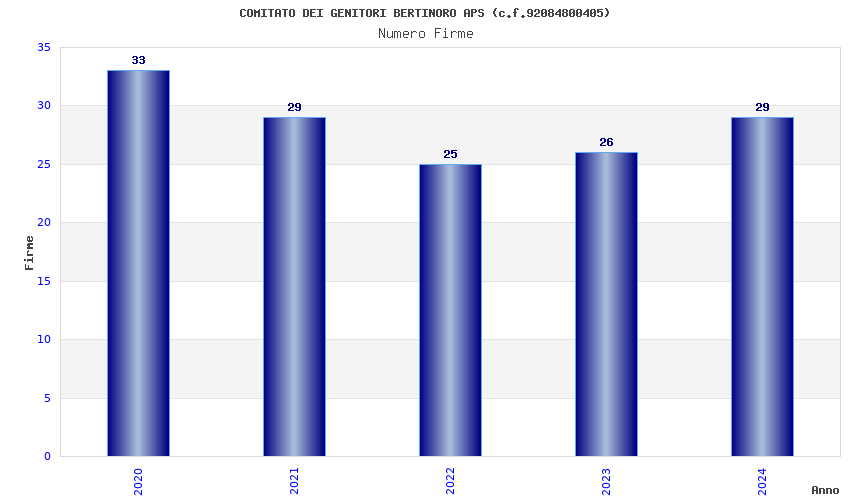 | Anno | Firme | Importi | Media | Naz. | Reg. | Prov. | Comu. |