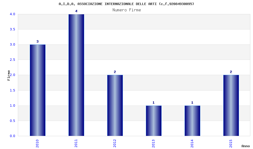 | Anno | Firme | Importi | Media | Naz. | Reg. | Prov. | Comu. |