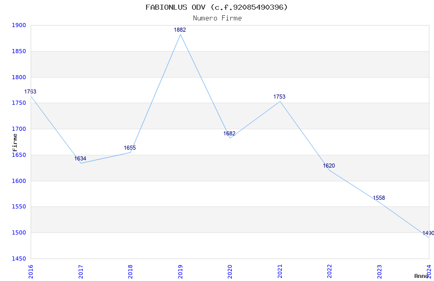 | Anno | Firme | Importi | Media | Naz. | Reg. | Prov. | Comu. |