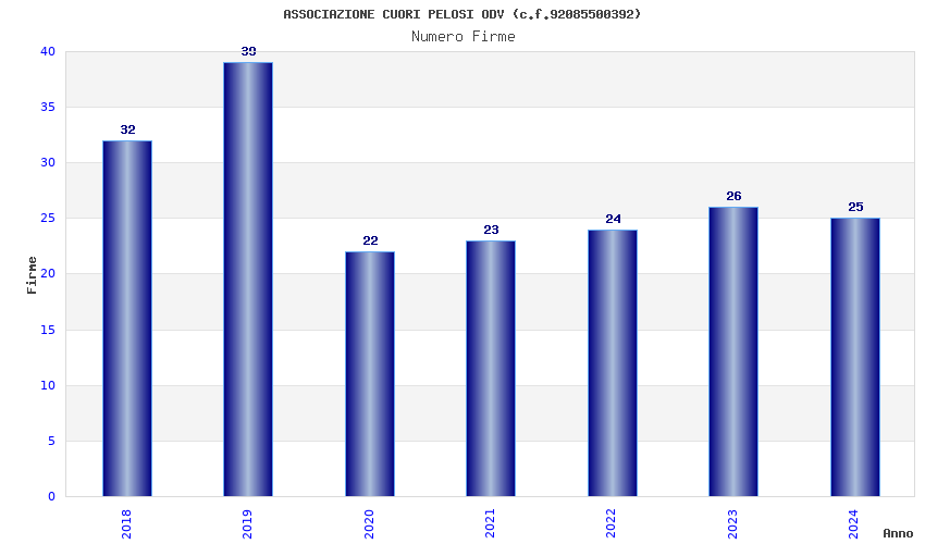 | Anno | Firme | Importi | Media | Naz. | Reg. | Prov. | Comu. |