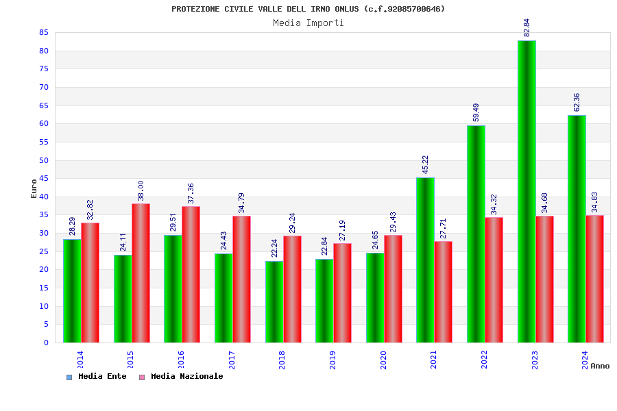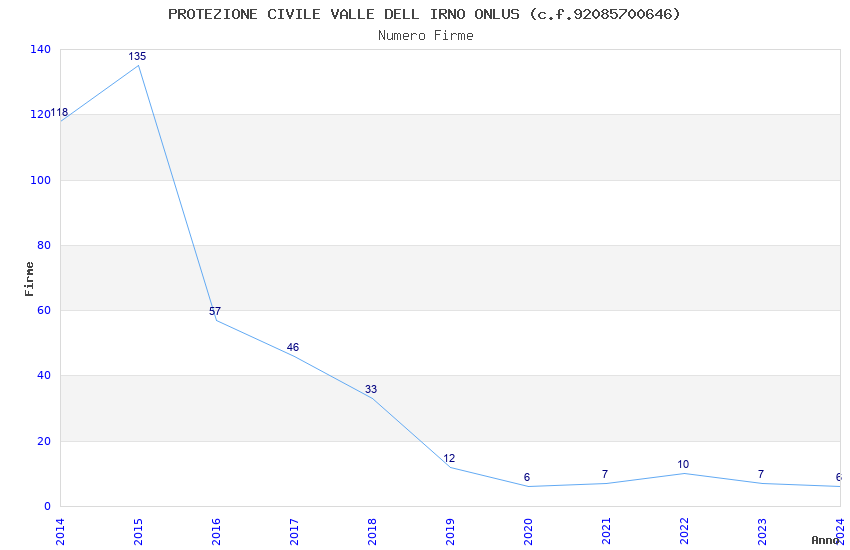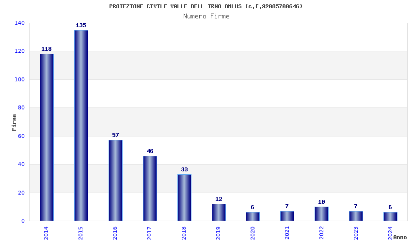 | Anno | Firme | Importi | Media | Naz. | Reg. | Prov. | Comu. |