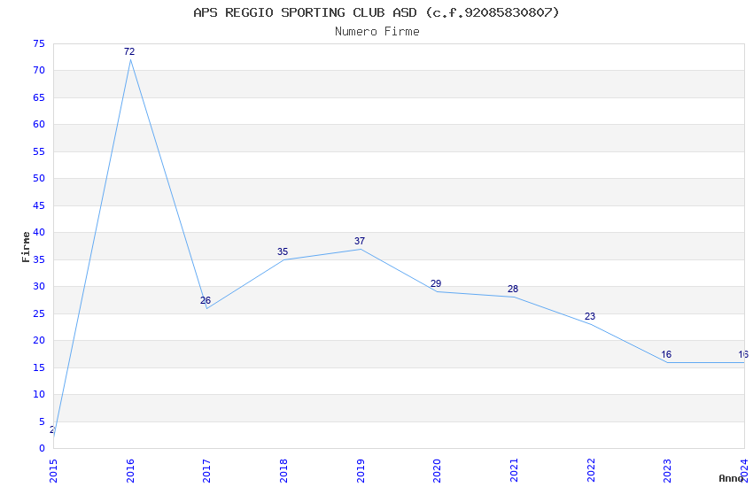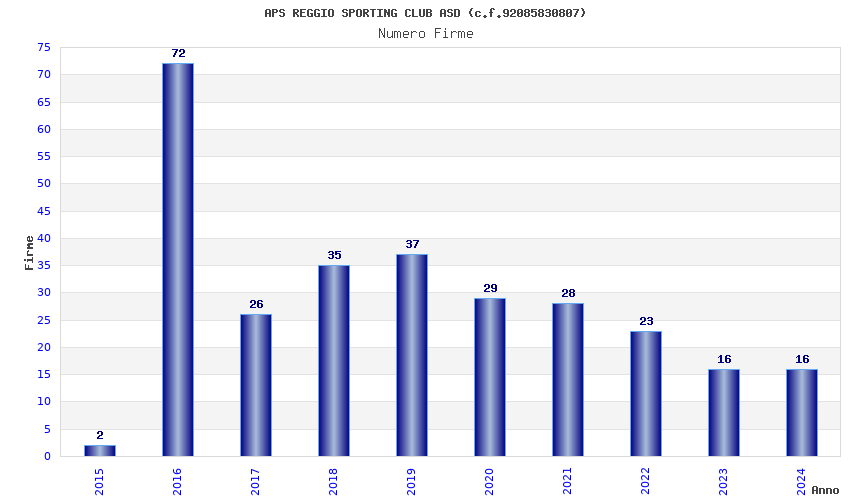 | 2016 | 72 | 5.814,47 | 80,76 | 9.425 | 193 | 63 | 35 |