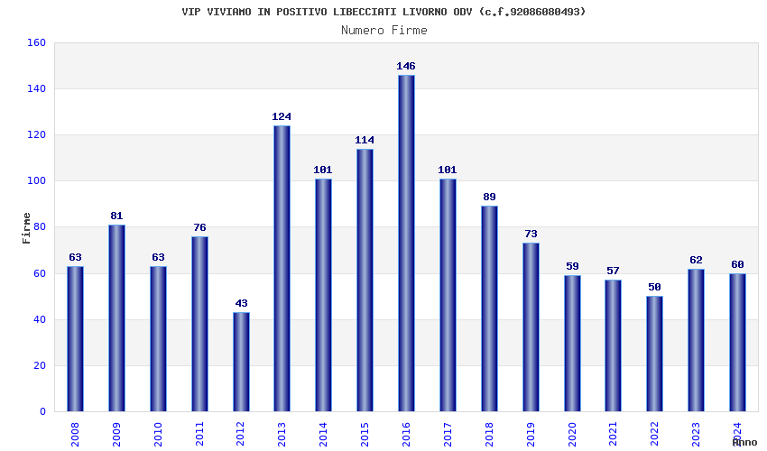 | Anno | Firme | Importi | Media | Naz. | Reg. | Prov. | Comu. |