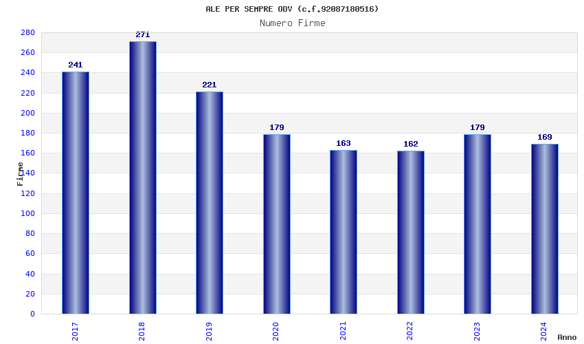 | Anno | Firme | Importi | Media | Naz. | Reg. | Prov. | Comu. |