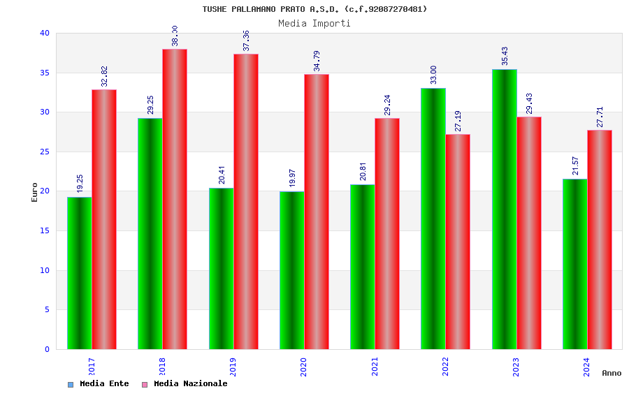 | Anno | Firme | Importi | Media | Naz. | Reg. | Prov. | Comu. |