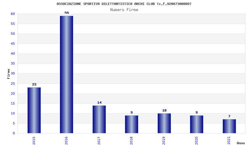 | Anno | Firme | Importi | Media | Naz. | Reg. | Prov. | Comu. |
