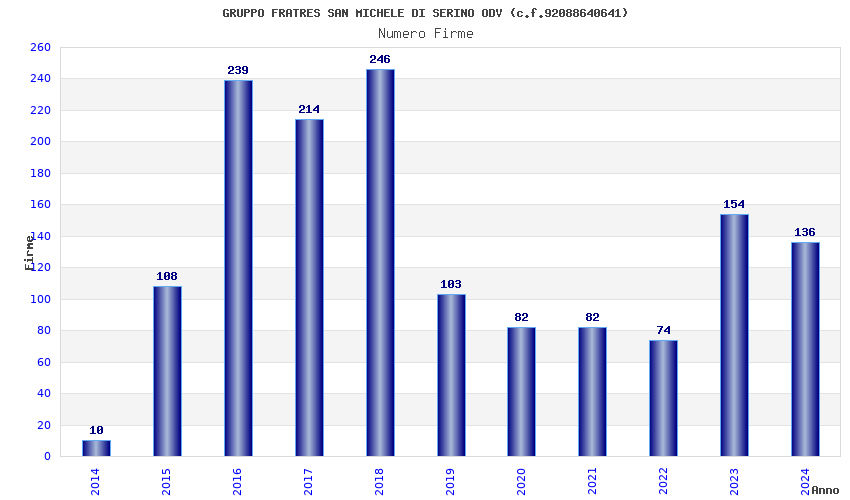 | Anno | Firme | Importi | Media | Naz. | Reg. | Prov. | Comu. |