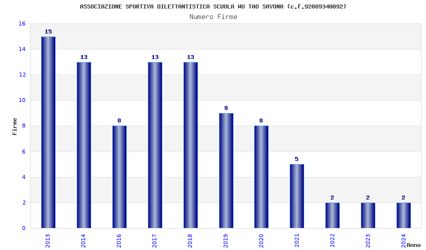 | Anno | Firme | Importi | Media | Naz. | Reg. | Prov. | Comu. |
