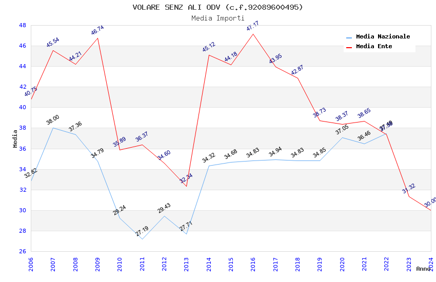 | Anno | Firme | Importi | Media | Naz. | Reg. | Prov. | Comu. |