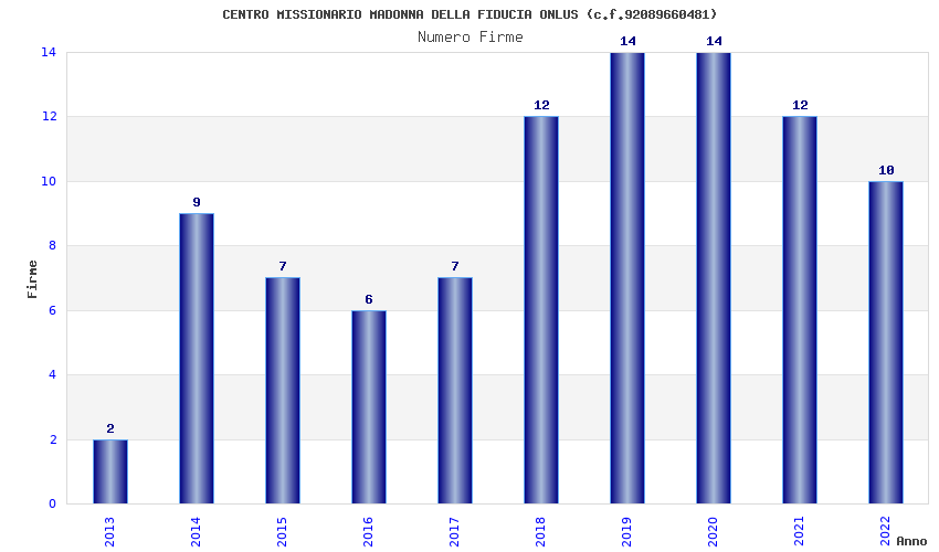 | Anno | Firme | Importi | Media | Naz. | Reg. | Prov. | Comu. |