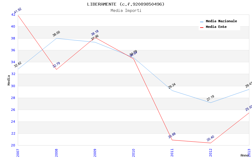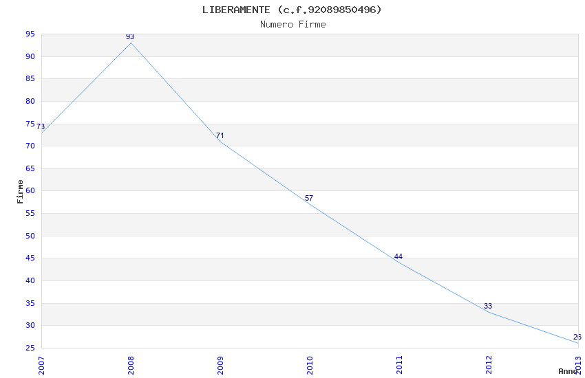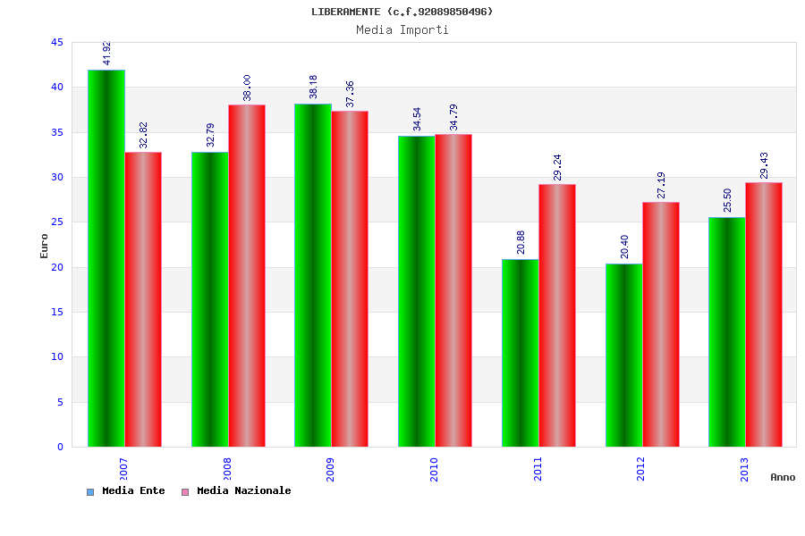 | Anno | Firme | Importi | Media | Naz. | Reg. | Prov. | Comu. |