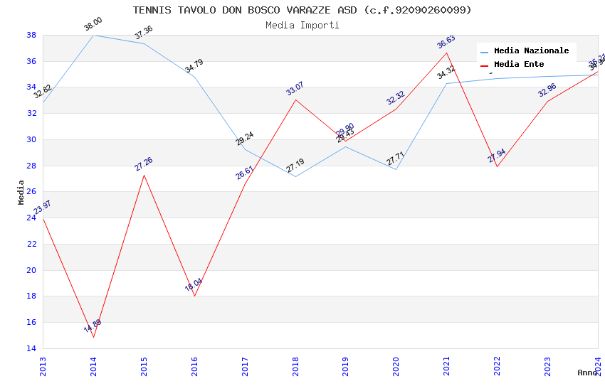 | Anno | Firme | Importi | Media | Naz. | Reg. | Prov. | Comu. |